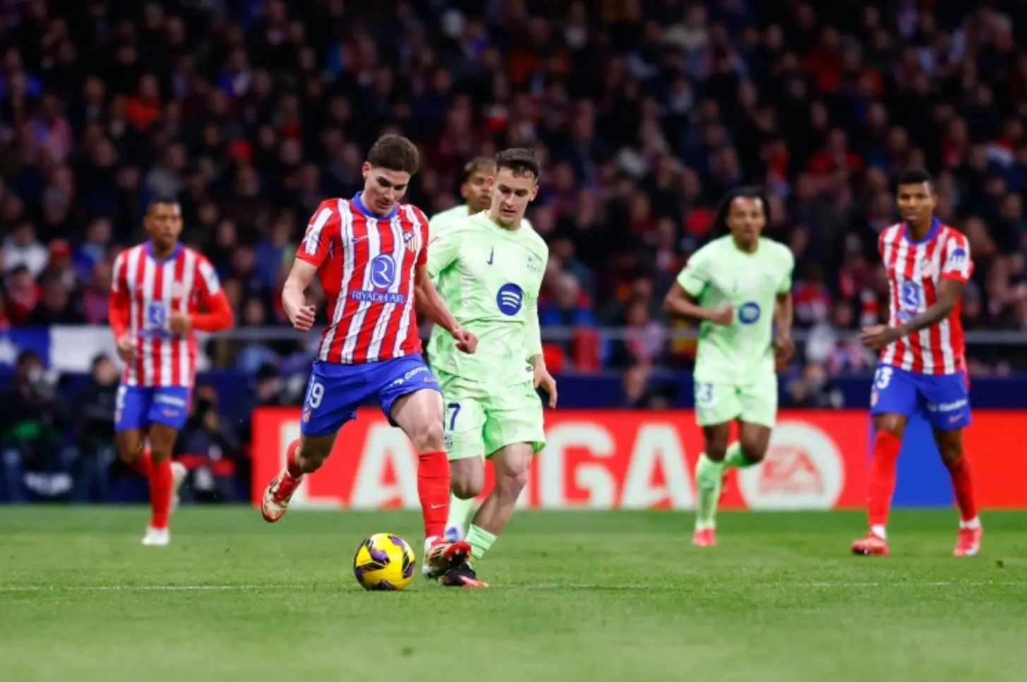 与巴萨最近的不稳定相比,马竞可谓是渐入佳境,球队在各项赛事中豪取三连胜,包括欧冠附加赛淘汰赛次回合4-1大胜布鲁日,以及3月1日西甲第26轮客场1-0绝杀奥维耶多。